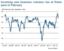 A Markit survey has indicated that the UK service sector continued to "expand strongly" in February 2014, with job creation at its fastest pace for four months.